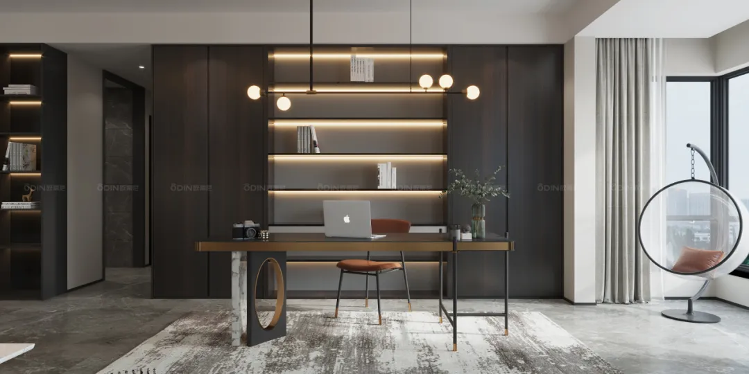 文化與氛圍:書房是家中文化氣息最濃的地方,應(yīng)注重裝飾品的選擇和布局,營造濃厚的文化氛圍。