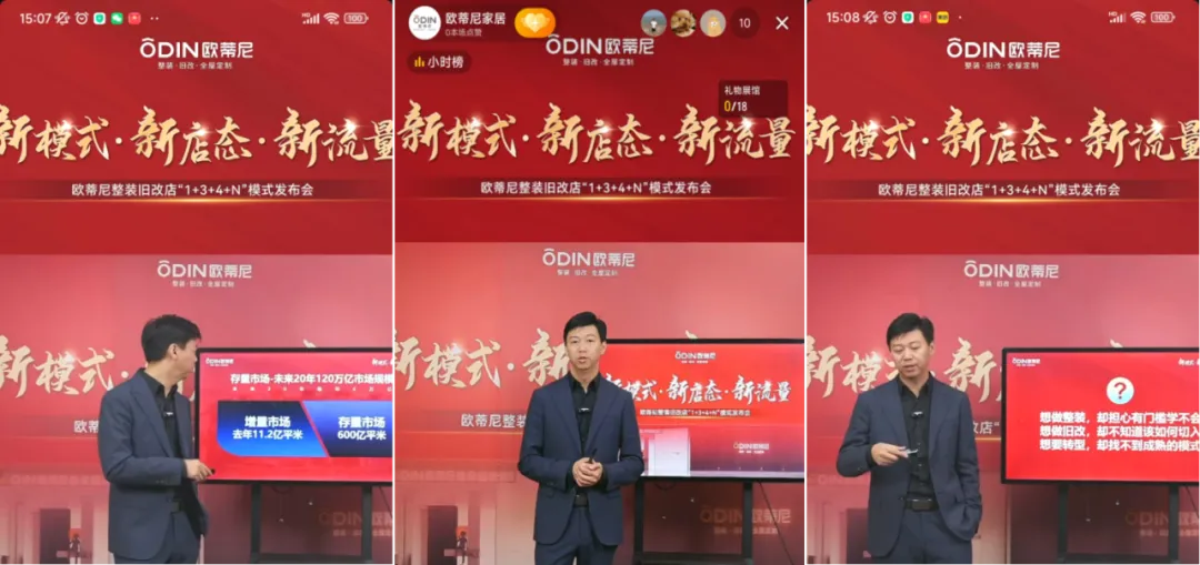 他們圍繞歐蒂尼整裝舊改店模式的革新性、在市場競爭中的獨特優勢、對客戶需求的精準洞察,以及核心的“313盈利模型”進行了全面而深入的剖析。通過直播的鏡頭,這些前沿的行業洞察與深刻的思考跨越地域界限,傳達給了全國觀眾。這也成為我們未來發展藍圖中不可或缺的寶貴指南與參考。
