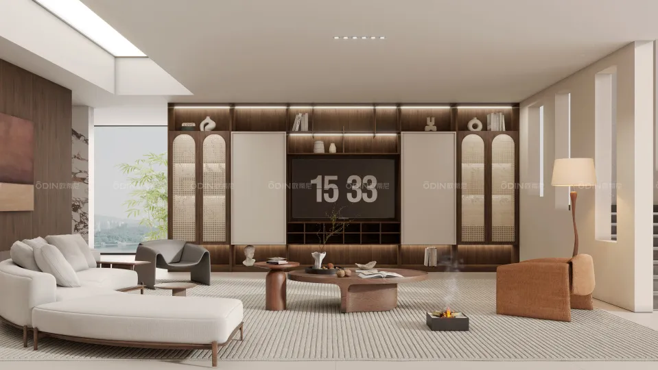 搭配經典胡桃色,讓柜體的色彩沉穩而不失高級。胡桃色的溫暖與復古,與藤編元素的自然古樸相得益彰,營造出濃厚的復古氛圍。無論是放在客廳、餐廳還是書房,都能成為一道亮麗的風景線。
