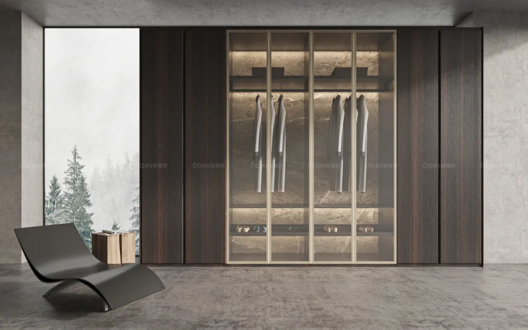 在選擇衣帽間的材質時,應優先考慮環保、無害的材料。如歐蒂尼的金標凈芯板、森源實木板等環保板材,這些材料不僅耐用且易于清潔,還能確保你的健康與安全。