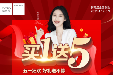五一狂歡,好禮送不停。2021年4月19日-5月9日,歐蒂尼攜手500+終端門店開啟以“買1送5”為主題的全國聯動大促活動。聚惠51,多重優惠超燃來襲!