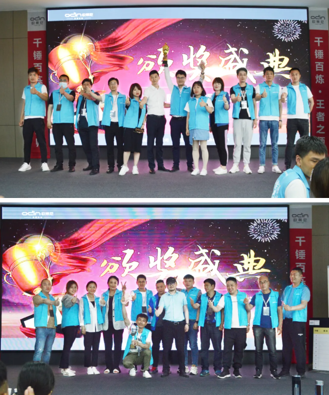 總結表彰 鼓足干勁在結業典禮上,歐蒂尼家居董事長王光有先生、營銷總監張明先生以及市場總監郭定先生也來到現場參與整個典禮并致辭,一起見證學員的學習成果。最終,根據3天2夜各小組的綜合表現&得分,評出冠軍組、亞軍組、季軍組!