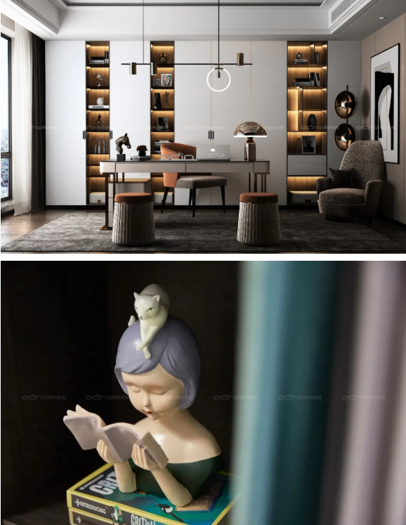 沉醉于墨海,共待流年。暖意漫溢,陽光在地面上跳舞。裝飾擺件與邊柜演繹冷黑與暖黃的多幕劇,如同人生的兩面表達。在享受一份悠然心情的同時,聆聽著生活的物語,讓靈魂蘊含歡樂,蔓延格調(diào)風情。