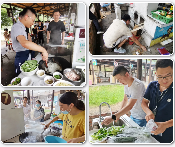 炊煙裊裊,芳香四溢。在藍(lán)山灣的大食堂,伙伴們展開了一場體力與智慧的較量、廚藝的炫技,用最樸素的方式來獲取我們的午餐——土灶柴火燒煮大鍋飯!這是目前最流行的拓展團(tuán)建方式之一。