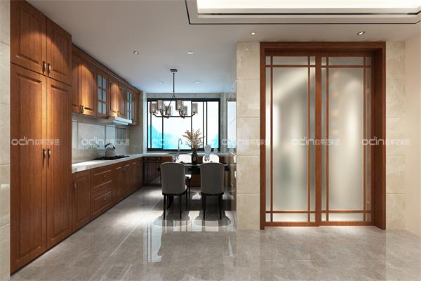 飯余,談笑風生起。摒棄繁華,線條流暢婉轉,盡顯東方典雅簡約美。廚房采用餐廚一體化設計,讓整個空間緊密結合、富有連貫性。