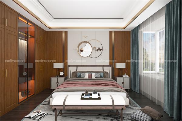 棲居,散發著純粹的東方氣息。衣柜整體以收納為主,對稱布局,與窗外盎景隔而相望。作為點睛之筆的精致細長明裝拉手,為大家很好的勾勒出靈動的生活空間。圓,韻味隱于形,寄望著對一切美好的向往。溫潤雅致的背景墻設計,簡約流暢的造型,很好地營造出了高級質感。中式設計的優勢是在于能夠很好地彰顯主人的高雅品位。此案例設計師摒棄繁華,線條流暢婉轉,盡顯東方典雅簡約之美。