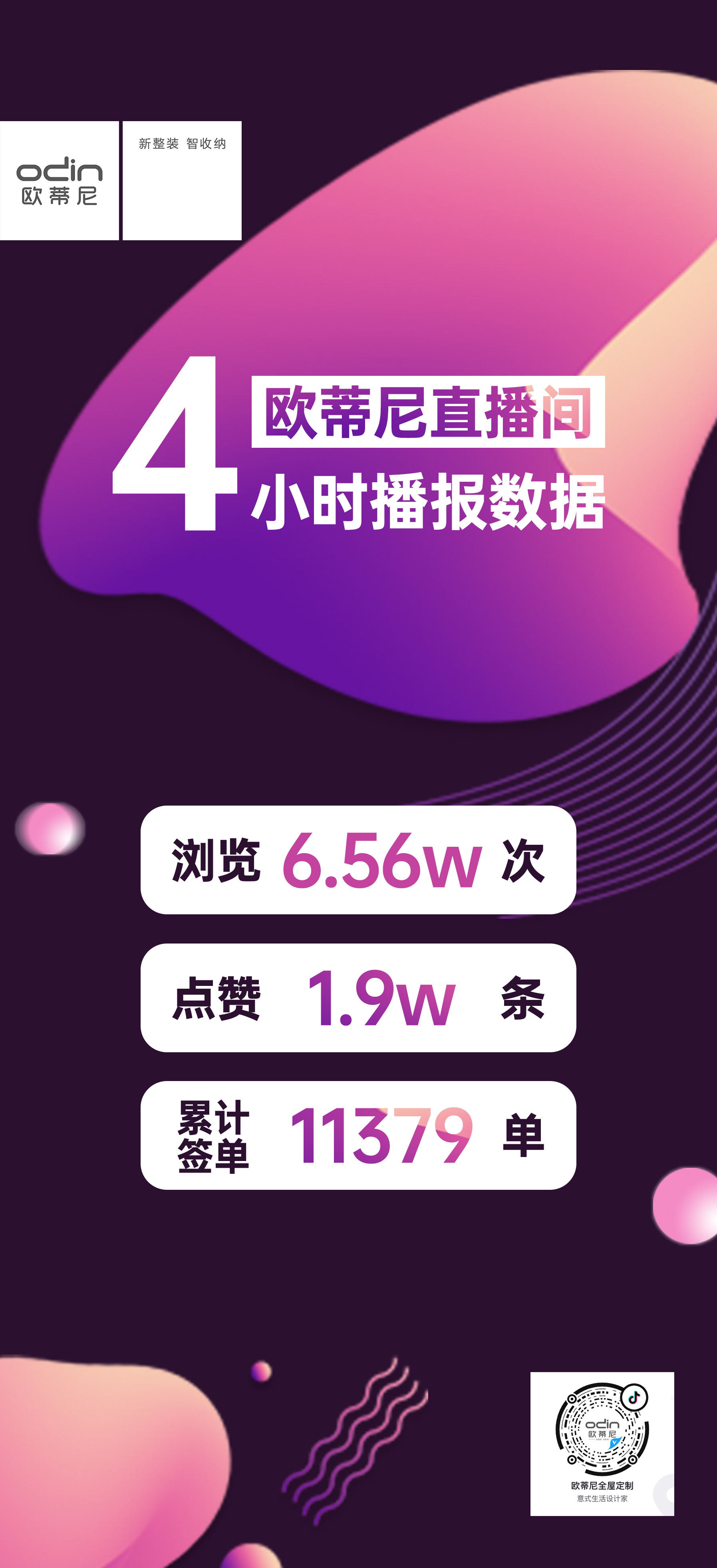 作為收官之戰(zhàn),歐蒂尼以抖音直播為載體+線下推薦的形式,聚焦并細(xì)分市場(chǎng)作總結(jié)。通過廠家與終端活動(dòng)相結(jié)合,集中優(yōu)勢(shì)資源為廣大用戶帶來鉅惠福利。直播4小時(shí),視頻點(diǎn)贊量突破1.9萬+,6.56W+直播在線觀看用戶,全國(guó)500+門店共累計(jì)簽單11379單。整個(gè)活動(dòng)感恩回饋,各大終端門店簽單不斷,現(xiàn)場(chǎng)人氣爆棚,圈粉無數(shù)。