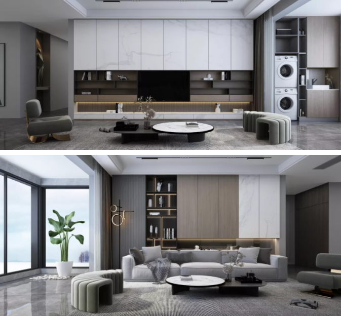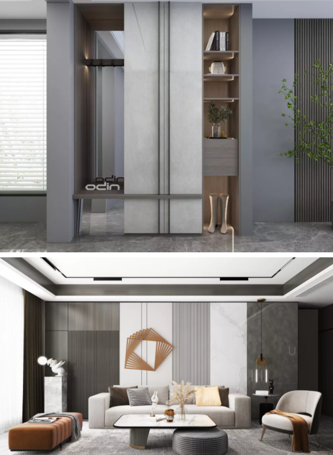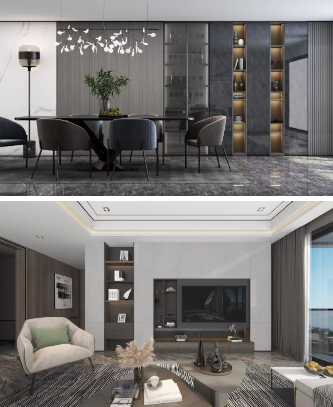 產品設計思路:遵循意式極簡輕奢風的開發思路,采用超高門板運用陣列的組合方式,塑造產品的線條感,流暢感。