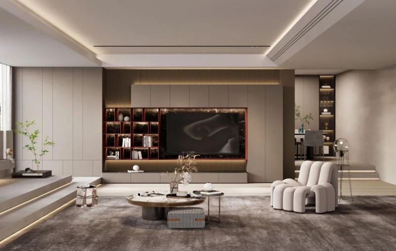 高定的門墻柜,承擔著找平,鏈接,設計的作用,以此完成空間統一的設計美感,釋放高定的空間情緒價值。